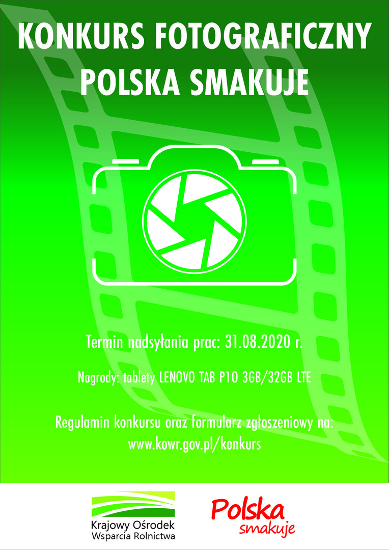 Krajowy Ośrodek Wsparcia Rolnictwa rozpoczął nabór do konkursu fotograficznego „Polska smakuje”. Celem konkursu jest promowanie produktów rolnych i żywnościowych, w tym szczególnie ekologicznych, tradycyjnych i regionalnych.