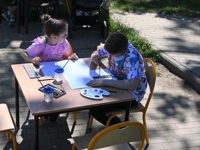Pan Ryszard Rosławski przeprowadził mini plener malarski wraz z konkursem plastycznym pt.: „Świat oczami dziecka”, w którym wszyscy uczestnicy wykazali się niezwykłym talentem malarskim.