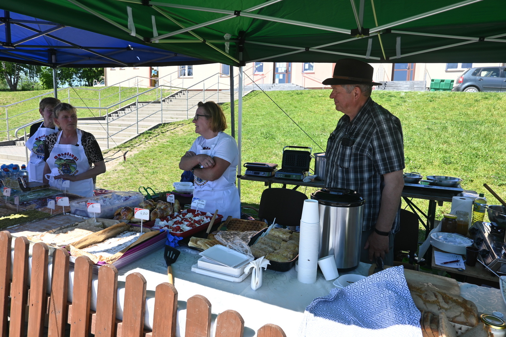 Na stadionie rozmieszczone były różnorodne stoiska, na których można było zakupić zabawki, balony z helem itp. Nie zabrakło również domowych przysmaków przygotowanych przez KGW Koleżanki Konarzynianki oraz lodów, gofrów, popcornu czy orzeźwiających sorbetów.