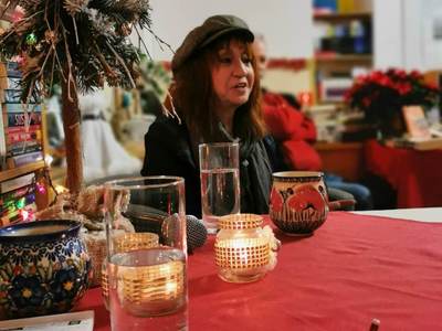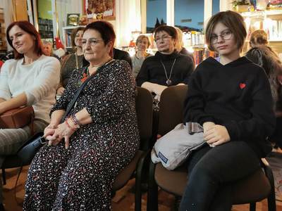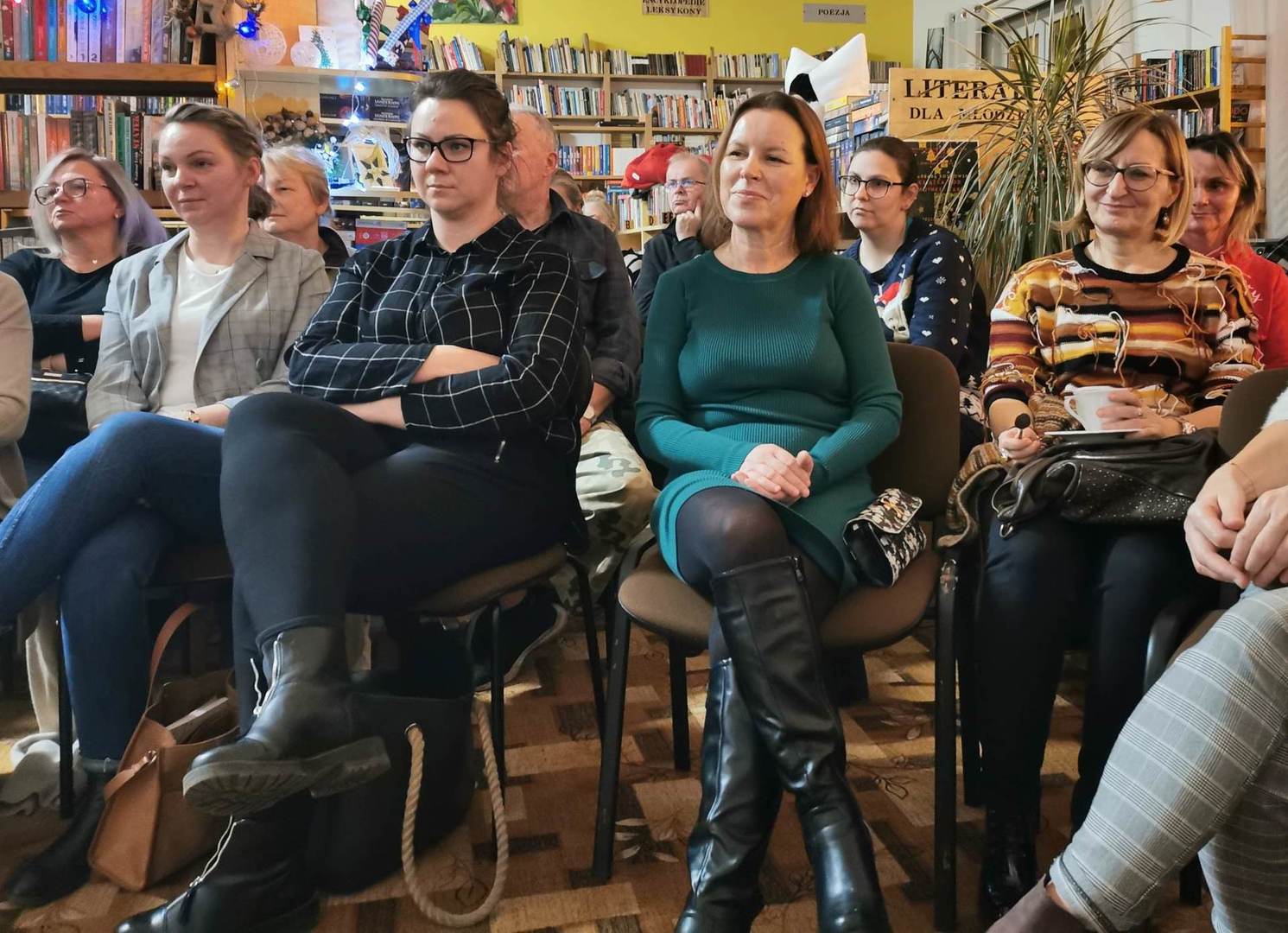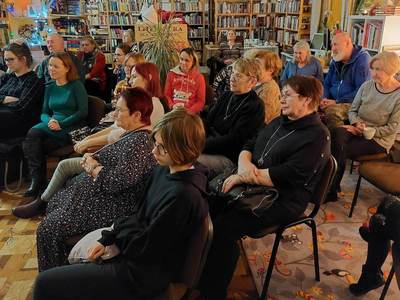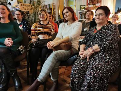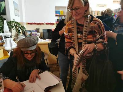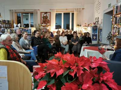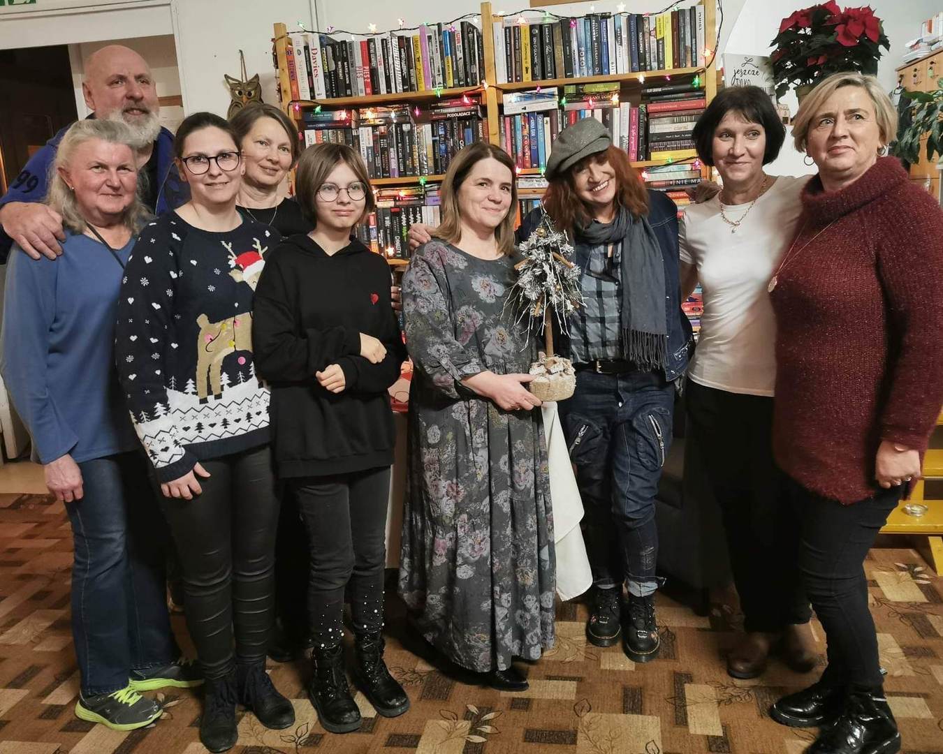 I takim sposobem, w minioną środę (7 grudnia) przybyła do naszej biblioteki p. Basia Kosmowska. Zaczarowała miejsce naszego spotkania, zaczarowała nas... otuliła swoją wrażliwością i delikatnością. Opowiedziała, dlaczego warto obdarowywać się książkami, dlaczego warto czytać dzieciom od najmłodszych lat, dlaczego warto czytać wspólnie. Dowiedzieliśmy się jakie książki sprawiły, że pokochała czytanie, w jaki sposób rozpoczęła się Jej przygoda z pisaniem i dla kogo pisze się najtrudniej. Świąteczna atmosfera i ciepełko, którym emanowała p. Basia sprawia, że na długo zapamiętamy ten cudowny wieczór.
