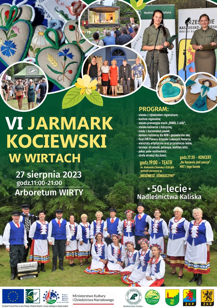 W tym roku będzie to już VI Jarmark Kociewski. W programie imprezy znajdą się, między innymi, zawody sportowe (biathlon letni, petanque, otwarte turnieje strzeleckie, strzelanie Bractw Kurkowych), warsztaty twórcze dla wszystkich grup wiekowych, konkursy wiedzy leśnej oraz występy artystyczne – na ludowo zagrają i zaśpiewają Burczybas, Kociewska Familija i Fefernóski. Będzie też poezja i... plenerowe widowisko teatralne w wykonaniu aktorów z Elbląga. Organizatorzy przygotowują także specjalną "strefę malucha". W trakcie Jarmarku jubileusz pięćdziesięciolecia będzie obchodziło Nadleśnictwo Kaliska, które jest współorganizatorem imprezy i gospodarzem Arboretum w Wirtach.
