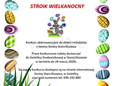 Urząd Gminy Stara Kiszewa oraz Świetlica Środowiskowa w Starej Kiszewie serdecznie zaprasza dzieci i młodzież z terenu gminy Stara Kiszewa do udziału w konkursie na stroik wielkanocny.