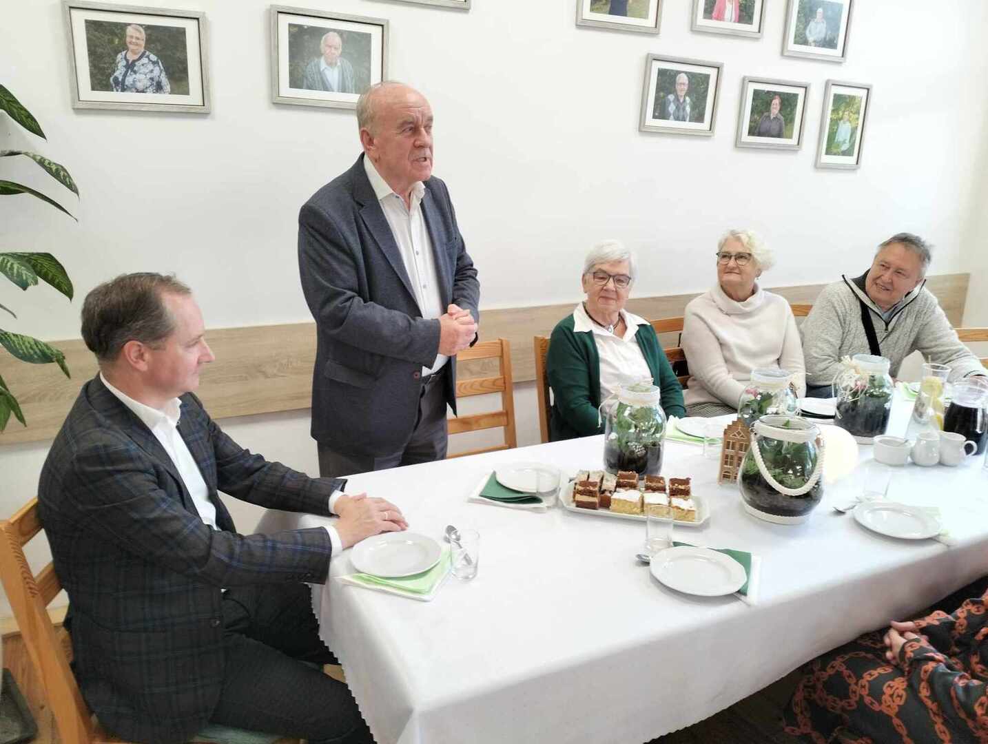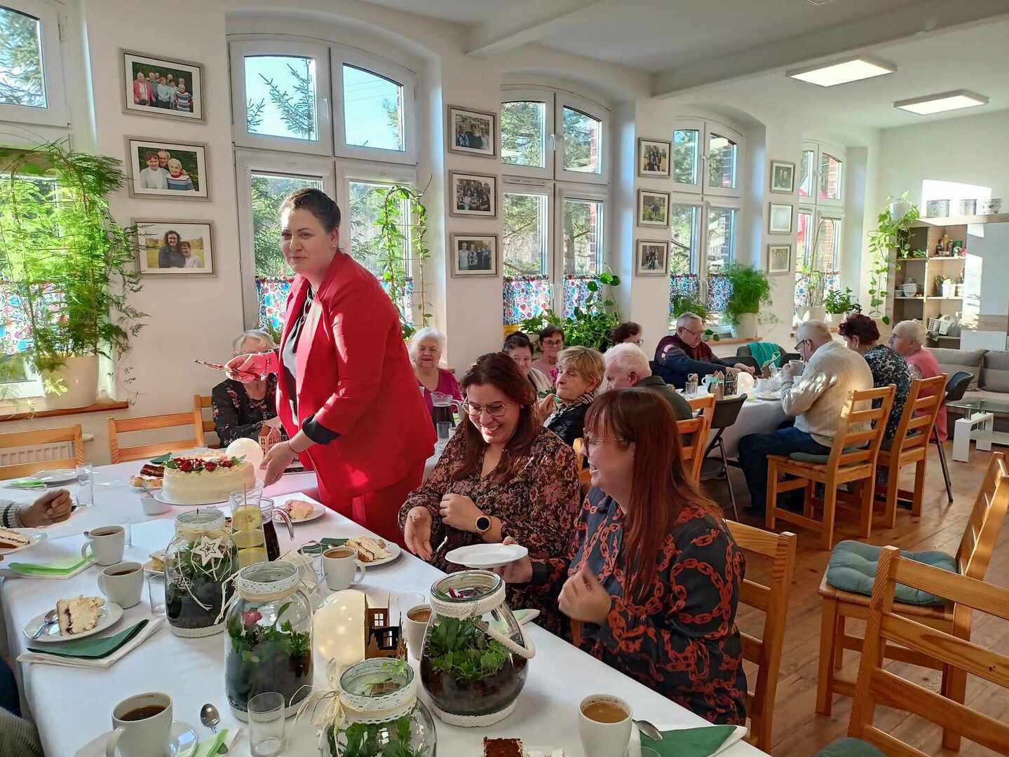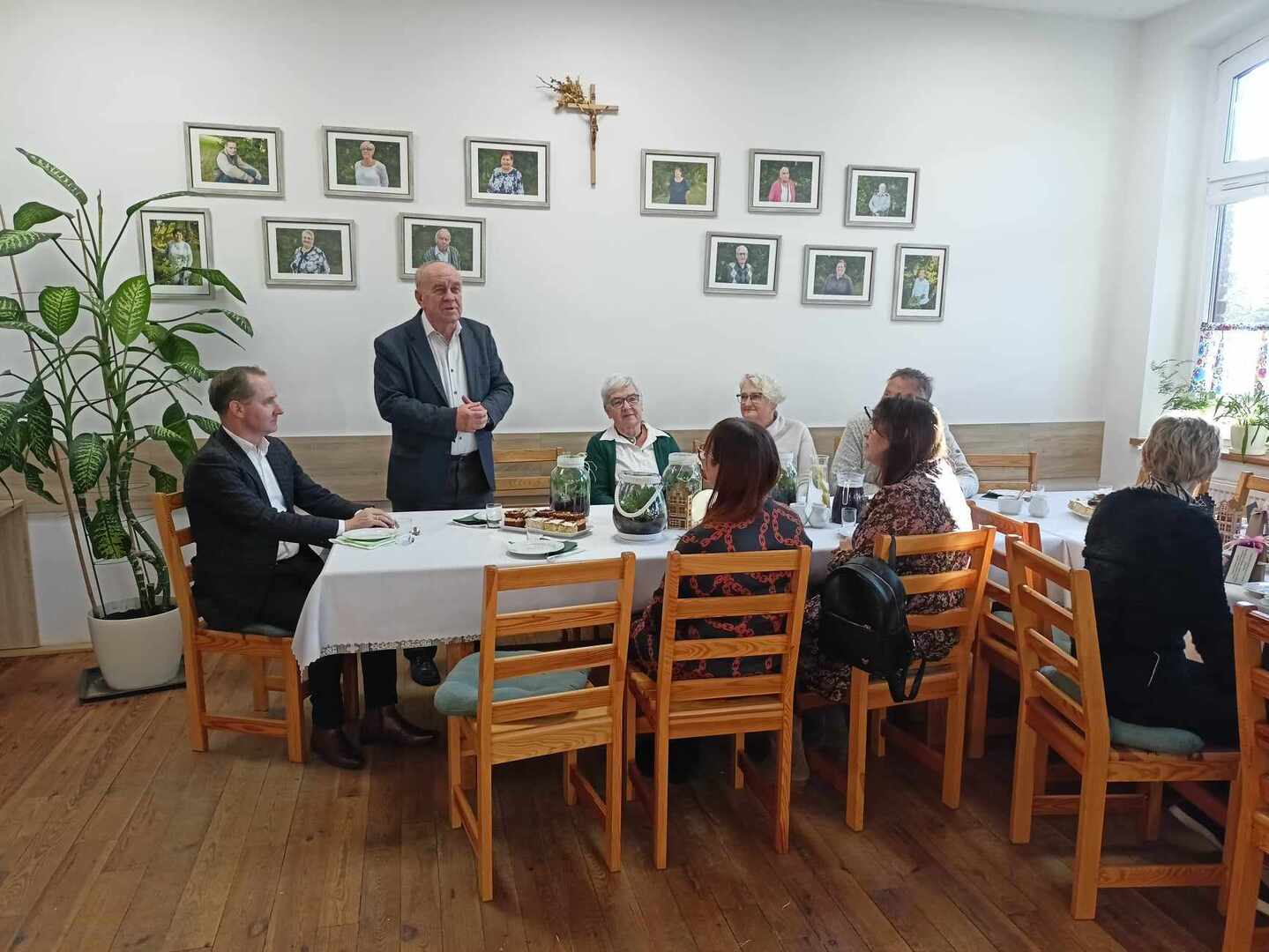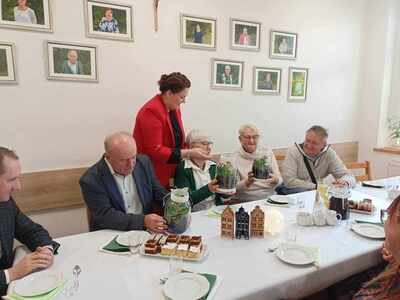 14 listopada obchodziliśmy Światowy Dzień Seniora. Z tej okazji 21 listopada 2023r. w placówce Domu Dziennego Pobytu Senior+ odbyła się uroczystość dla wszystkich pensjonariuszy. Na spotkanie zaproszeni zostali: Prezes Fundacji „Sprawni Inaczej” Pani Justyna Rogińska oraz Członkowie Zarządu Pani Mira Szachun i Pani Patrycja Ćwikałowska, Wójt Gminy Pan Marian Pick, Sekretarz Gminy Pan Andrzej Hinc, Kierownik OPS Pani Joanna Mikołajska, ks. Proboszcz Andrzej Taliński. Wspólne świętowanie rozpoczęło się od przywitania gości przez Panią Kierownik DDP Senior+ Martę Dysarz. Kolejno głos zabrali Wójt Gminy Marian Pick oraz Prezes Fundacji Mira Szachun. Następnie wszyscy razem usiedli do stołu, gdzie mieli przyjemność skosztować słodkości oraz zjeść wspólny obiad. Dla każdego pensjonariusza z okazji ich święta czekał upominek. Uroczystość zakończyła się wspólnym śpiewem przy akompaniamencie ks. Proboszcza Andrzeja Talińskiego.