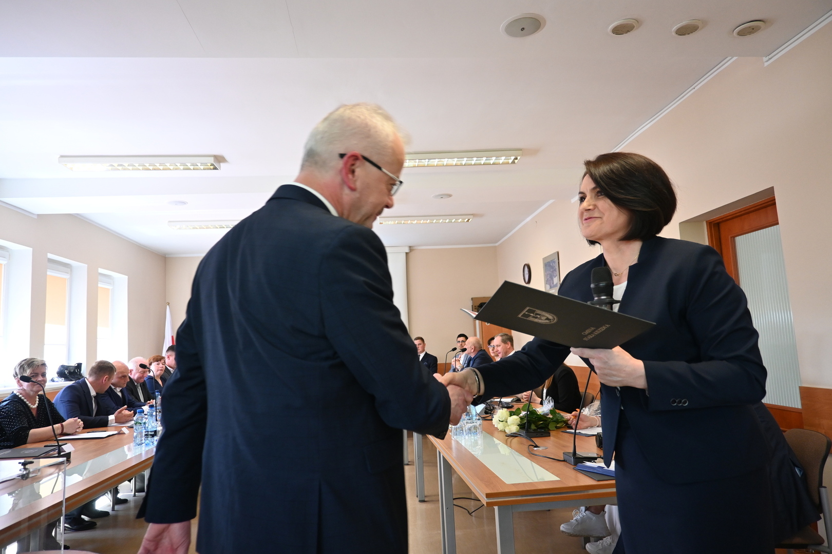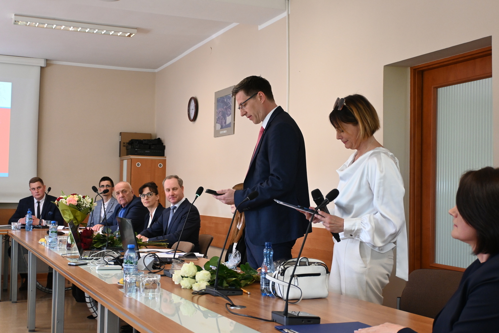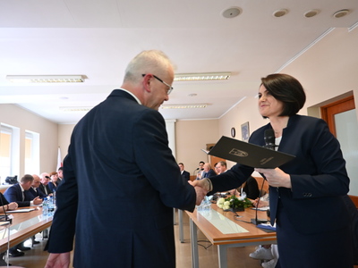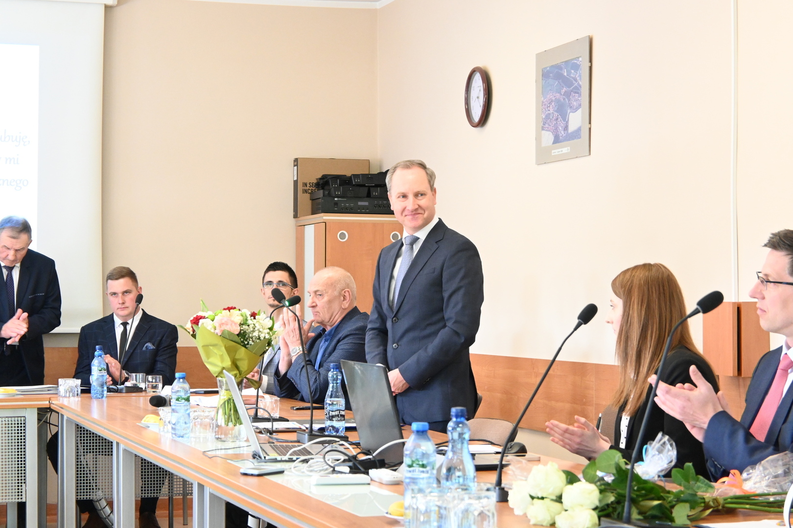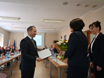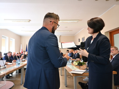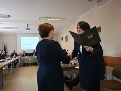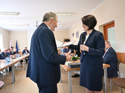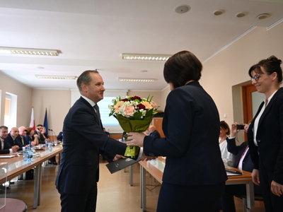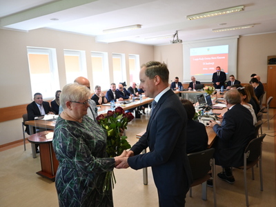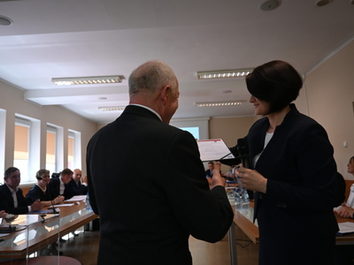 Swoje zaświadczenie o wyborze odebrał również nowo wybrany Wójt Gminy Stara Kiszewa Pan Andrzej Hinc, po czym złożył ślubowanie. Po ślubowaniu Wójt otrzymał kwiaty oraz liczne gratulacje. Następnie został poproszony o zabranie głosu.