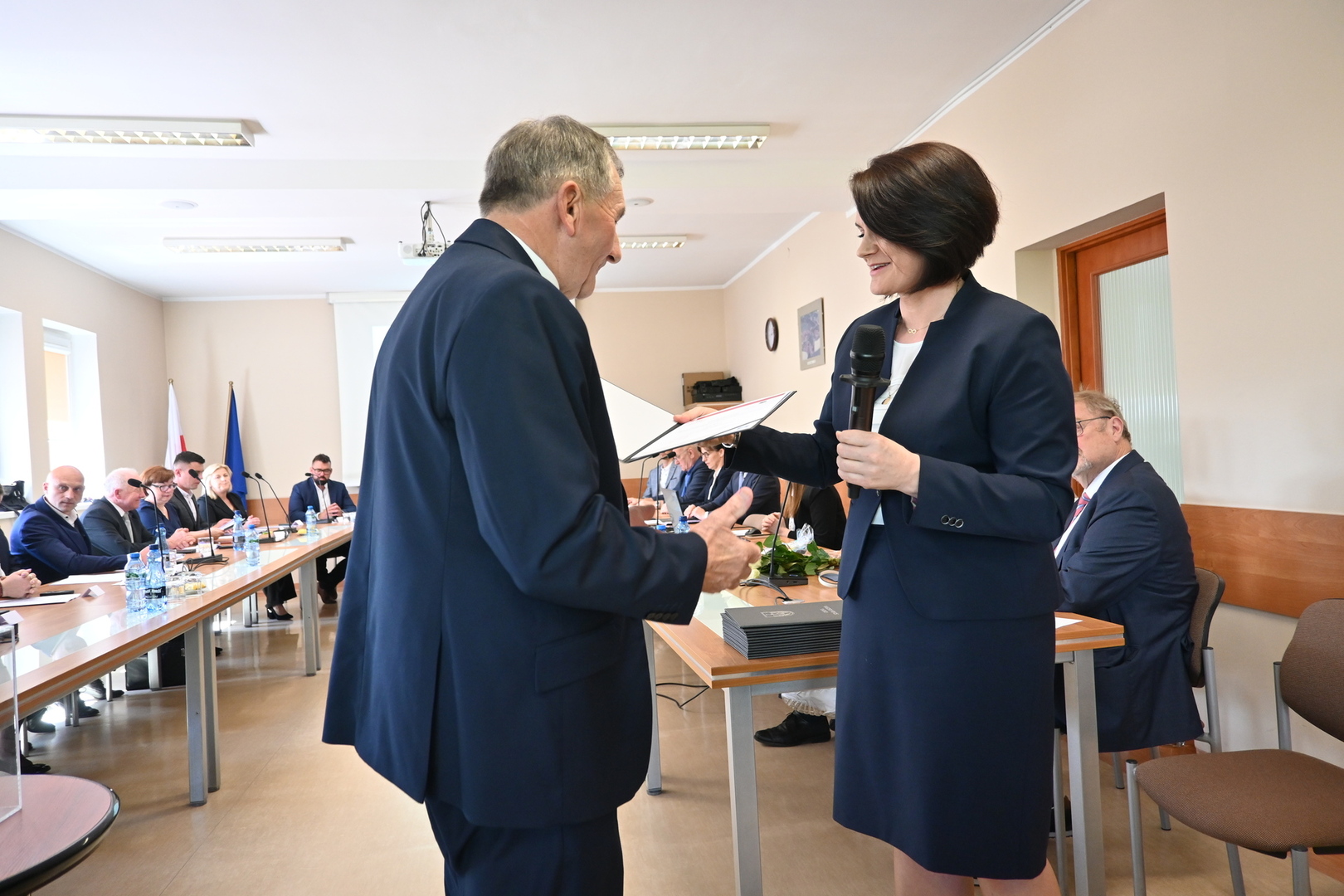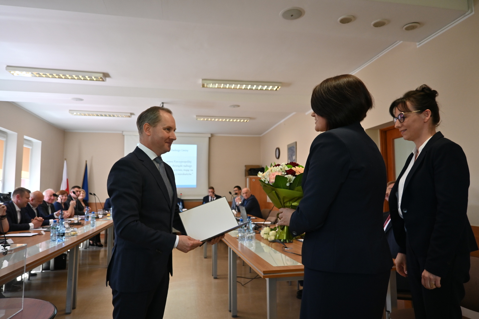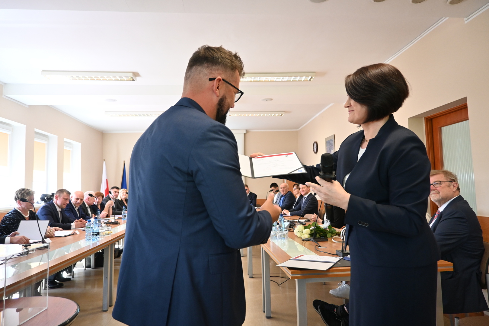 Swoje zaświadczenie o wyborze odebrał również nowo wybrany Wójt Gminy Stara Kiszewa Pan Andrzej Hinc, po czym złożył ślubowanie. Po ślubowaniu Wójt otrzymał kwiaty oraz liczne gratulacje. Następnie został poproszony o zabranie głosu.