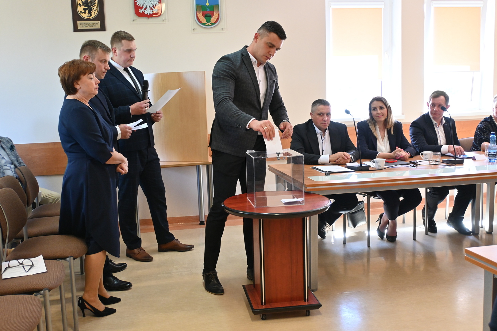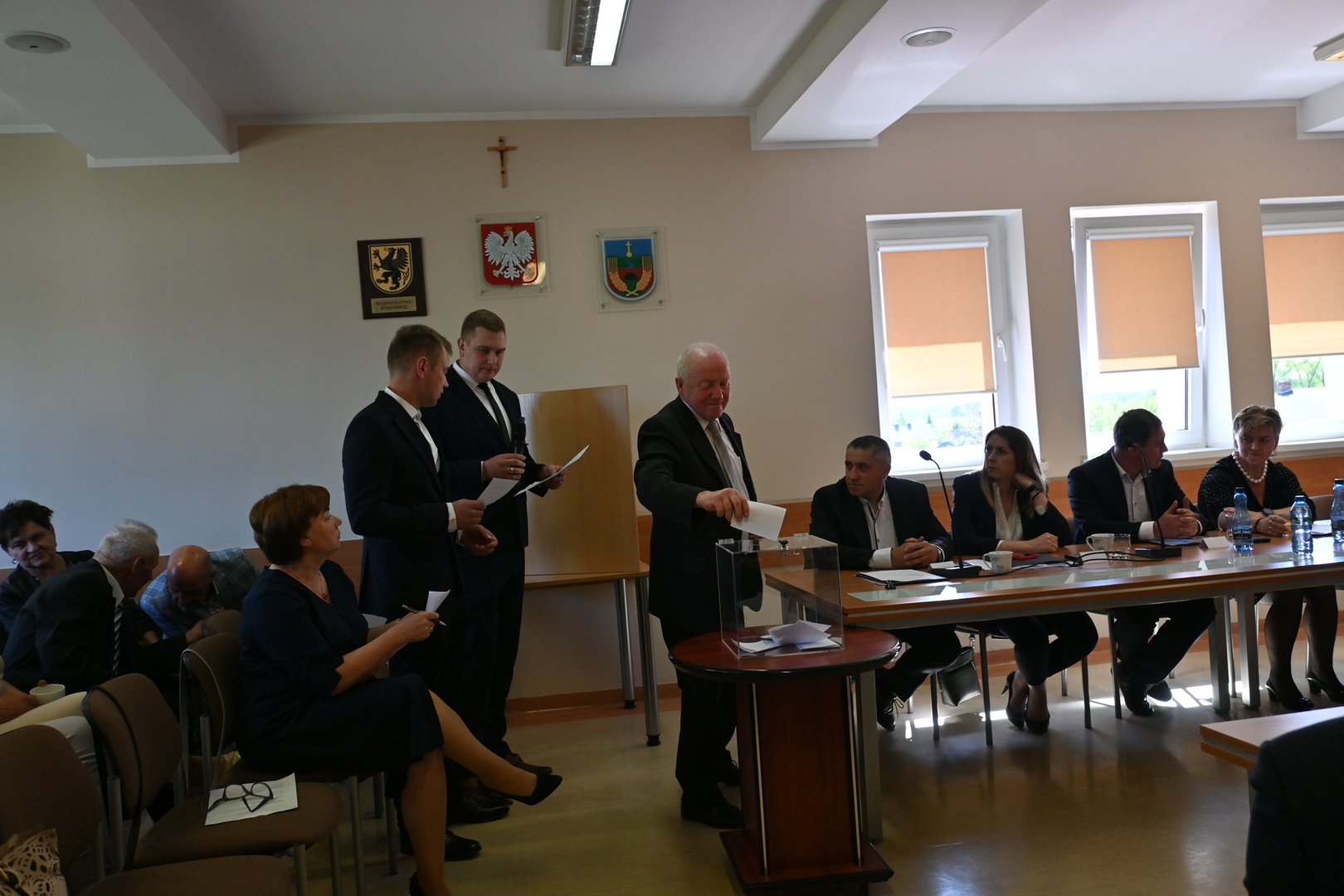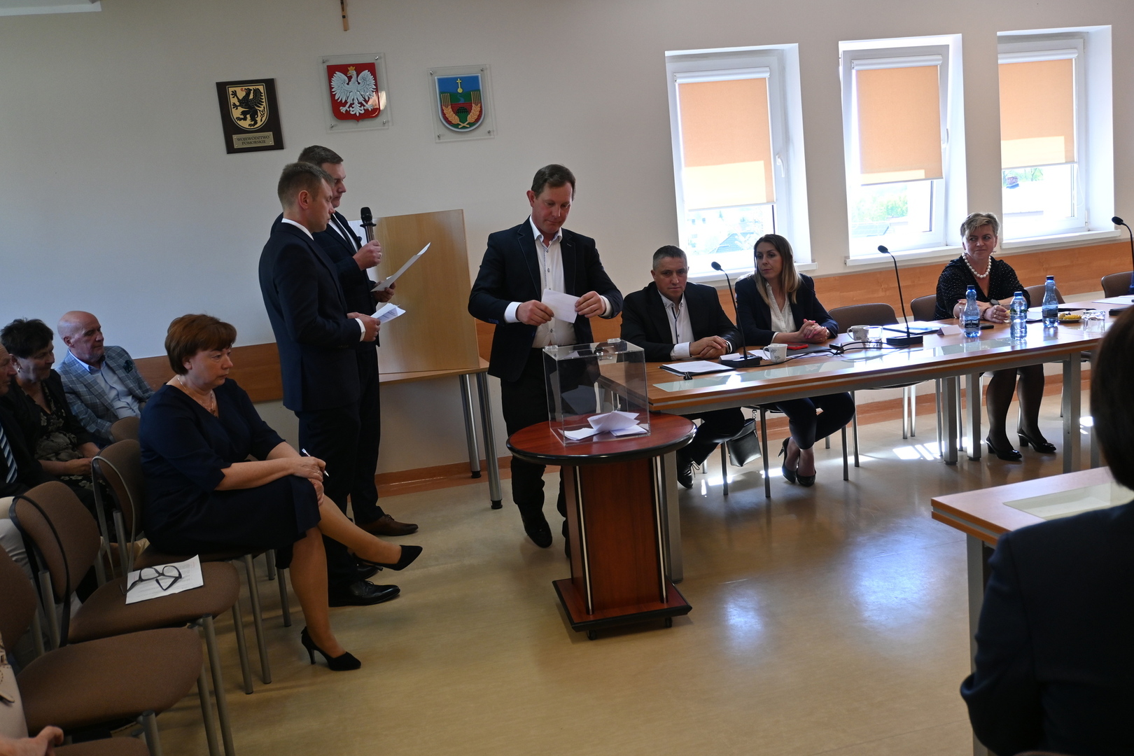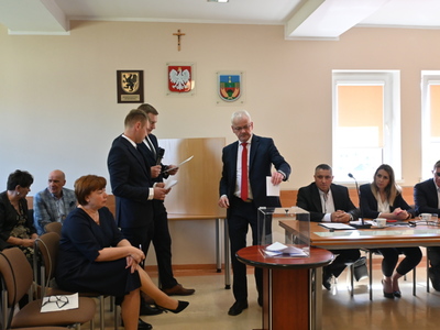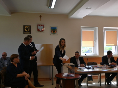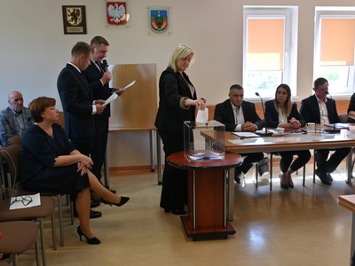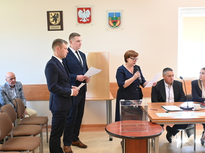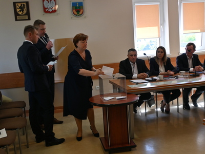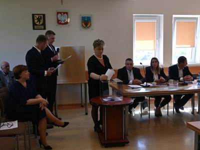 Radni podczas sesji dokonali wyboru prezydium Rady Gminy. Na Przewodniczącego jednogłośnie wybrano Karola Wołoszyka, który był jedynym kandydatem do objęcia tej funkcji. O stanowisko Wiceprzewodniczącego ubiegało się dwóch Radnych: Pani Jarosława Polak i Pan Adam Sulewski. W wyniku tajnego głosowania, otrzymując 8 głosów, na funkcję tę radni wybrali Radną Panią Jarosławę Polak. Pan Radny Adam Sulewski otrzymał 7 głosów.