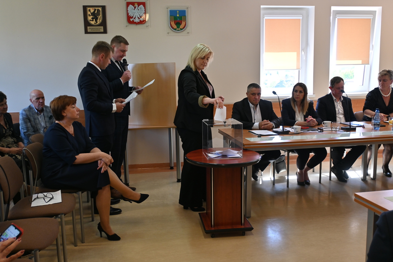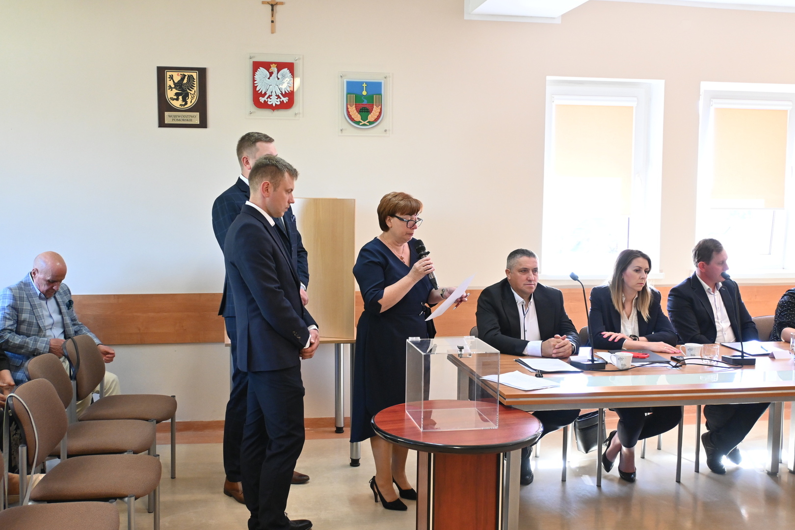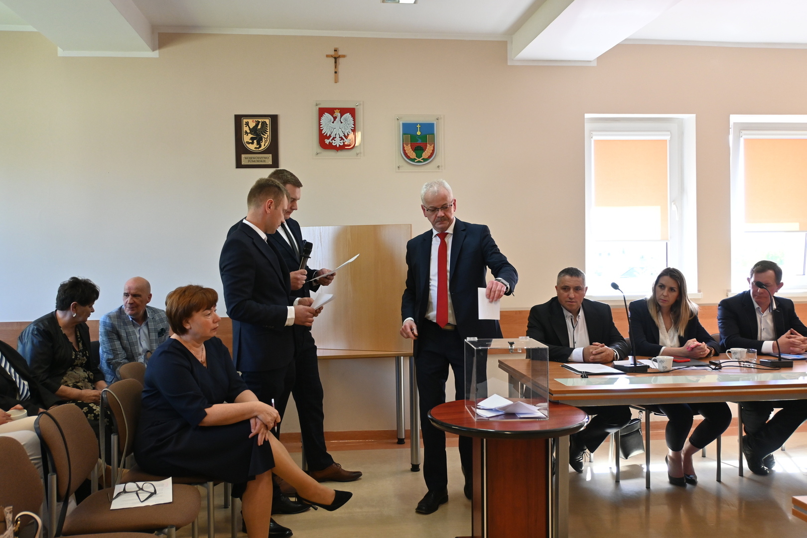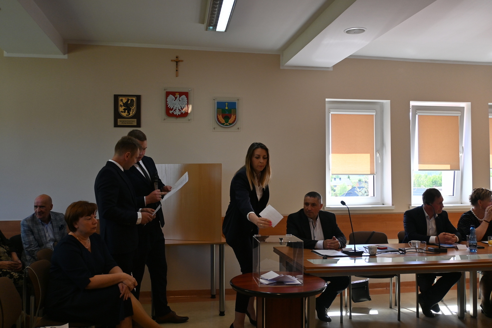 Radni podczas sesji dokonali wyboru prezydium Rady Gminy. Na Przewodniczącego jednogłośnie wybrano Karola Wołoszyka, który był jedynym kandydatem do objęcia tej funkcji. O stanowisko Wiceprzewodniczącego ubiegało się dwóch Radnych: Pani Jarosława Polak i Pan Adam Sulewski. W wyniku tajnego głosowania, otrzymując 8 głosów, na funkcję tę radni wybrali Radną Panią Jarosławę Polak. Pan Radny Adam Sulewski otrzymał 7 głosów.