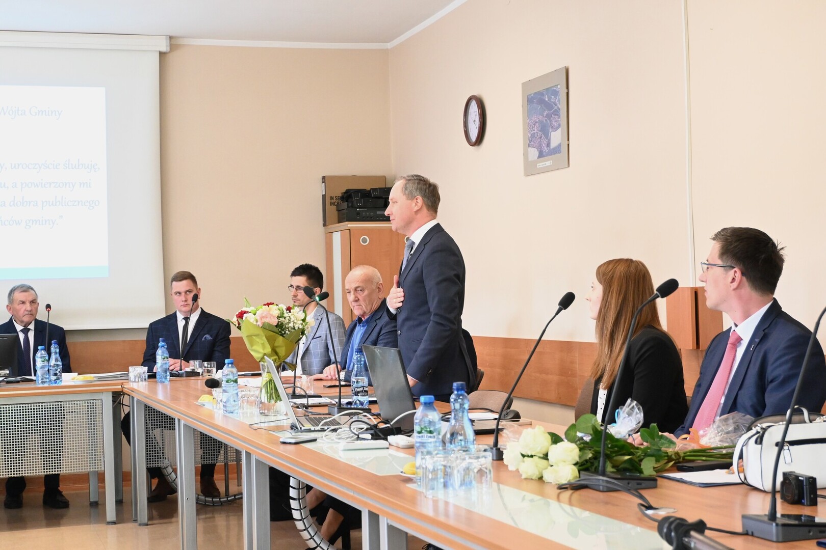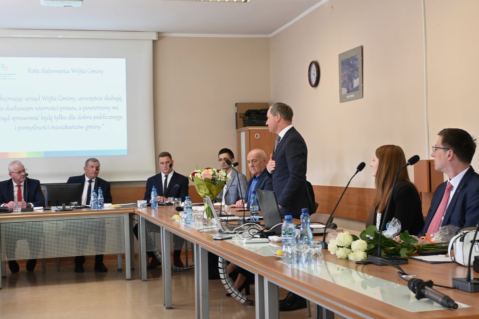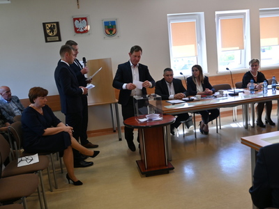 Zwracając się do radnych Wójt Gminy podkreślił, że od dziś łączy Nas Gmina. Następnie dodał: Głęboko wierzę, że także i Wy drodzy Radni włączycie się w realizację propozycji, które były zawarte we wskazanym przez wyborców programie wyborczym. Ufam, że jako radni odnajdujecie w moim programie także swoje postulaty, które kierowaliście do swoich wyborców.