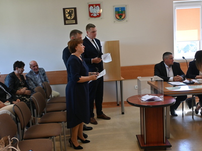 W wystąpieniu nowo zaprzysiężony Wójt z sposób szczególny podziękował mieszkańcom gminy za poparcie udzielone w wyborach. Podziękowania skierował także w stronę byłego Wójta Mariana Picka za zaufanie, którym został obdarzony dokładnie 16 lat temu, kiedy zostawał jego Zastępcą. Pan Andrzej Hinc dodał, że w swojej pracy będzie czerpał, jak najwięcej ze wspólnych doświadczeń. Podziękował za piękne słowa wypowiadane przez Pana Mariana Picka, że czuje się spokojny, bo Gminę zostawia w dobrych rękach.