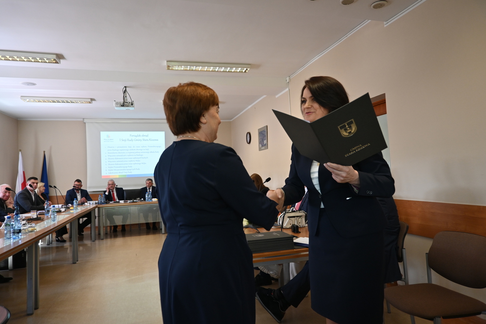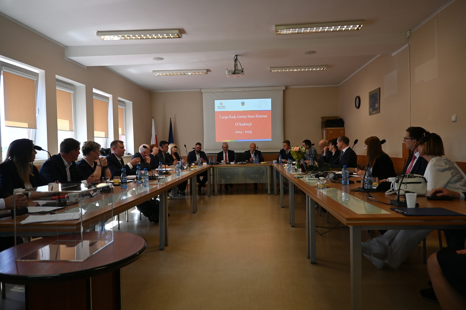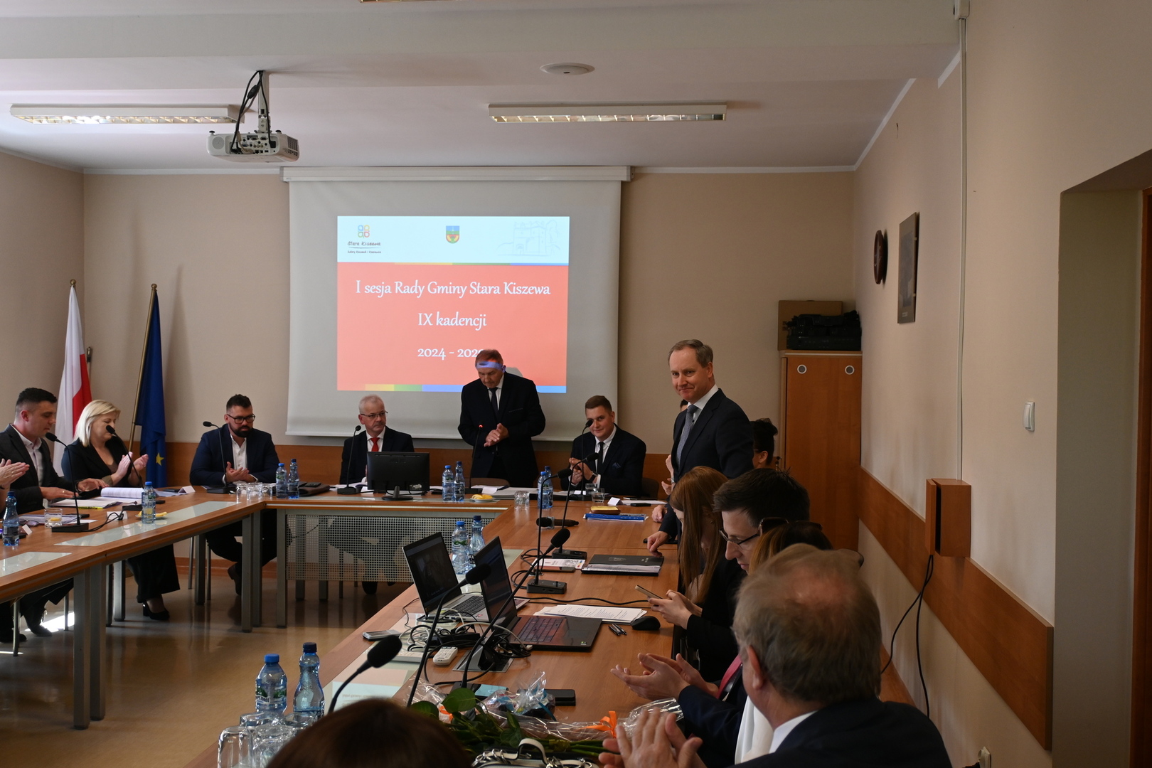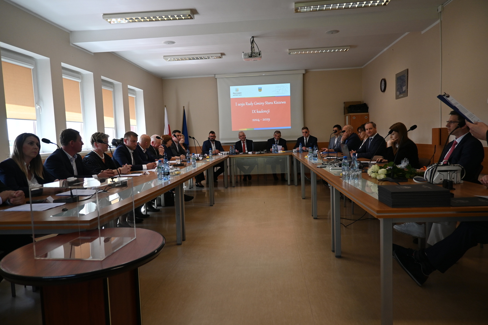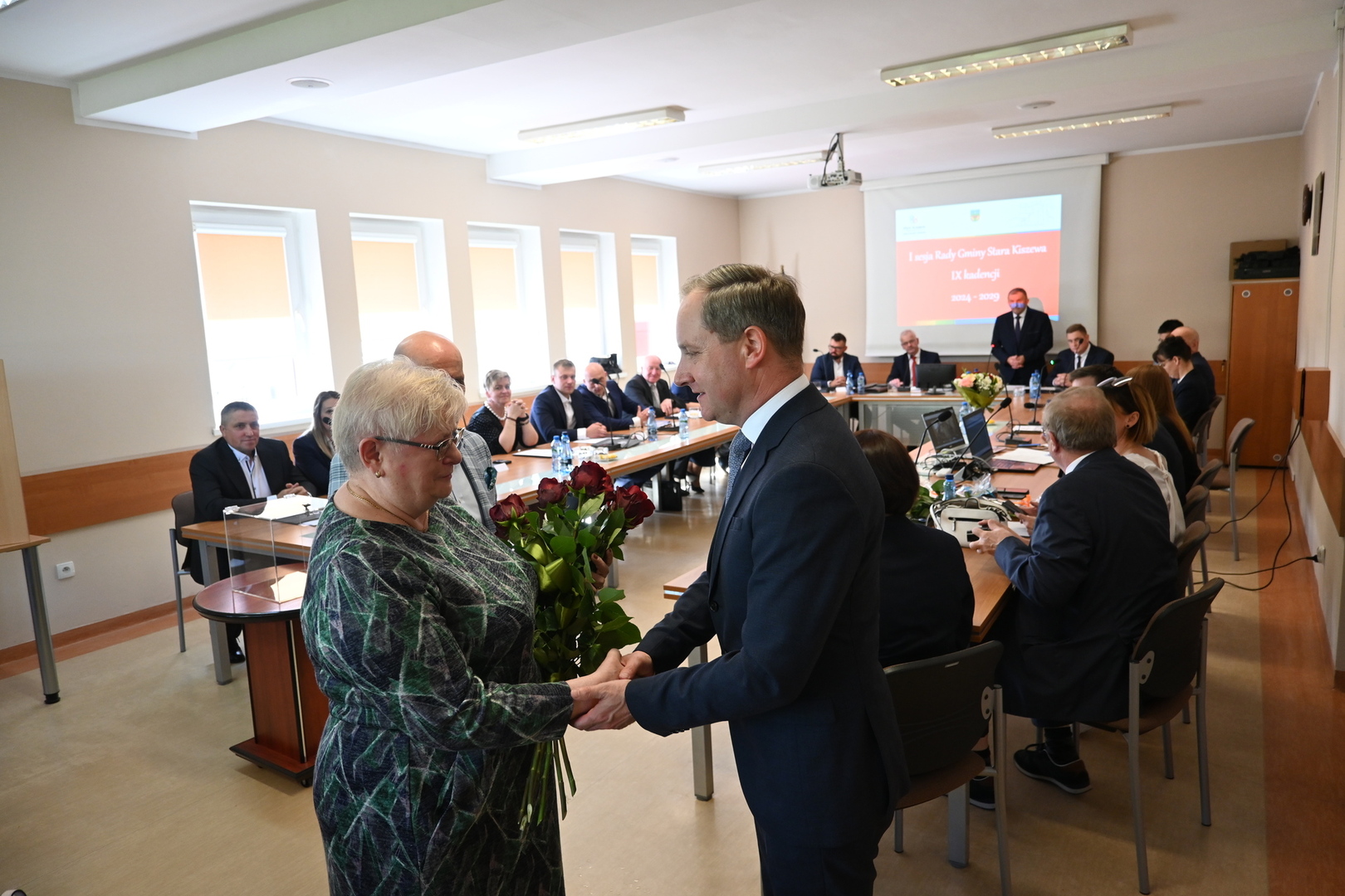W dniu 7 maja o godz. 13:00 w Sali Narad Urzędu Gminy, odbyła się pierwsza sesja nowo wybranej Rady Gminy Stara Kiszewa. Otworzył ją najstarszy wiekiem Rady Pan Jerzy Dolny, który prowadził sesję do czasy wyboru Przewodniczącego. Przywitał wszystkich Radnych, Wójta, Przewodniczącą Gminnej Komisji Wyborczej oraz liczne grono gości, wśród których obecni byli sołtysi, dyrektorzy i kierownicy jednostek gminy oraz delegacja z partnerskiej niemieckiej Gminy Lahntal w osobach Burmistrza Pana Carstena Laukel, byłego Burmistrza Pana Manfreda Apell oraz opiekuna naszego partnerstwa Pani Agi Sauerwald. Warto podkreślić, że delegacja Gminy Lahntal pierwszy raz w historii partnerstwa uczestniczyła w obradach I sesji Rady Gminy Stara Kiszewa.