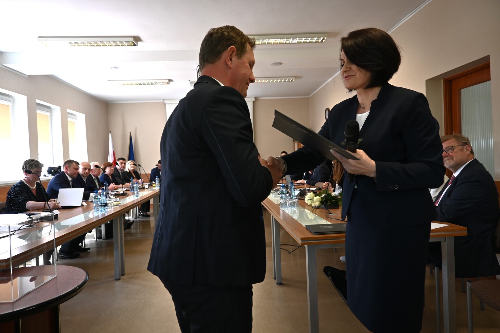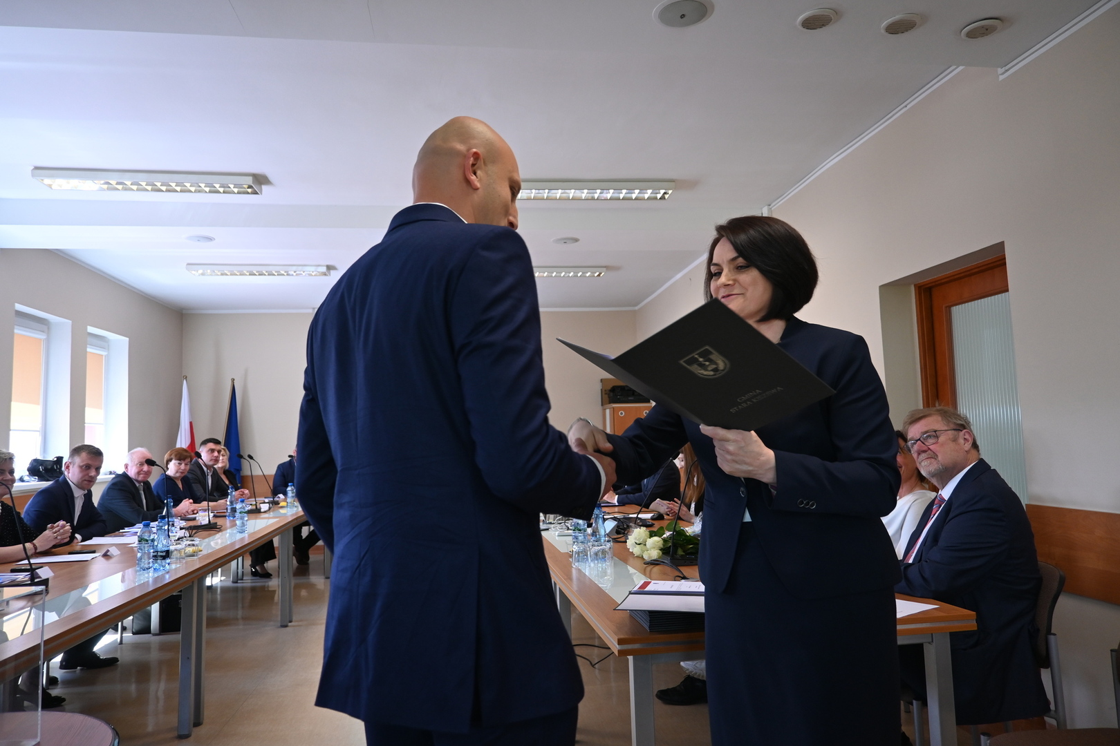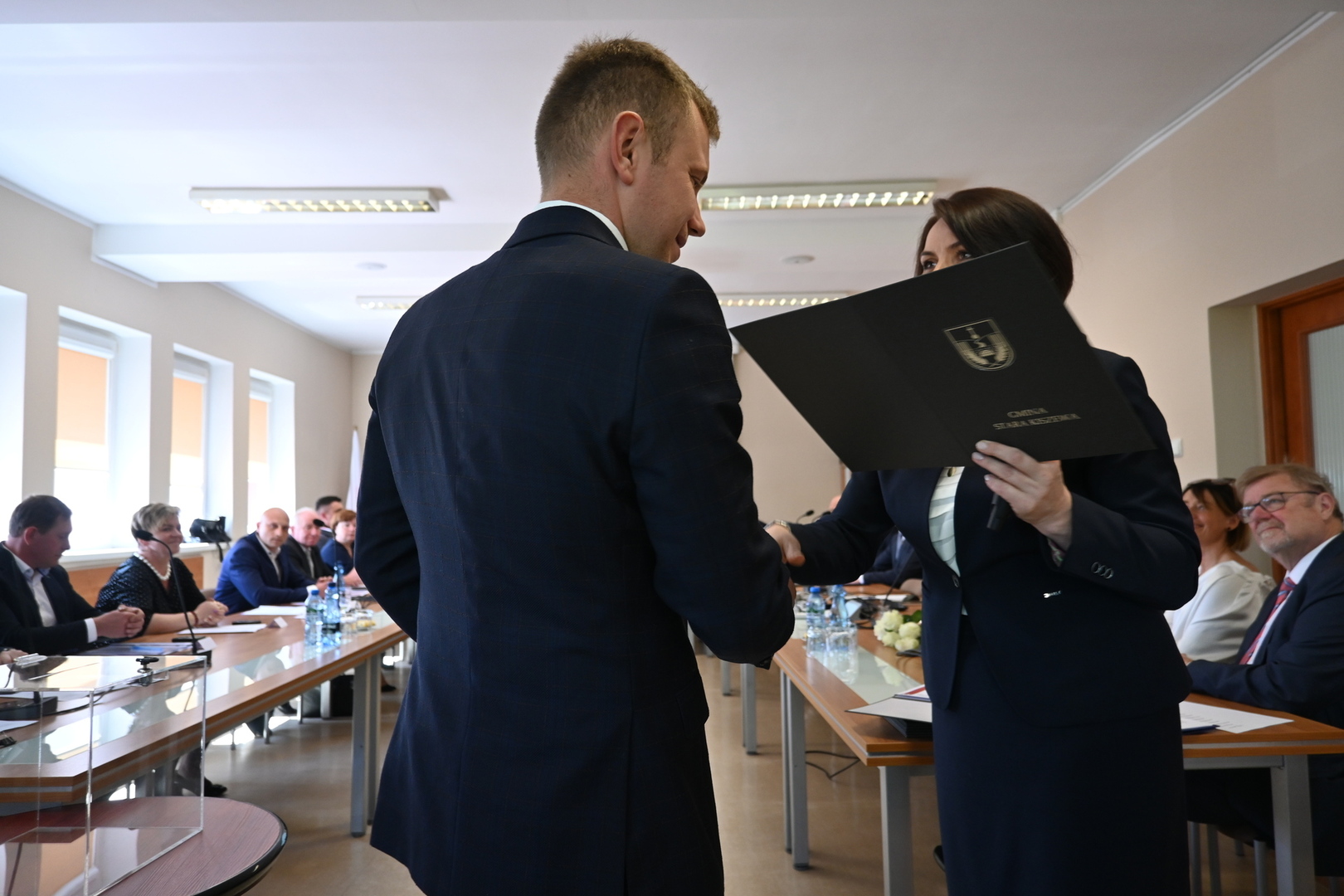 Po wystąpienie nowo zaprzysiężonego Wójta głos zabrał również Burmistrz Gminy Lahntal Carsten Laukel, który w swoim wystąpieniu pogratulował nowo wybranemu Wójtowi i podkreślił, jak ważne jest wspólne działanie na rzecz gminy. ,,Chciałbym podkreślić, że realizacja zadań dla gminy nie leży wyłącznie w gestii Wójta. Jest to raczej wspólne przedsięwzięcie wszystkich, zarówno administracji, jak i Radnych. Tylko dzięki jedności i wspólnym wysiłkom możemy osiągnąć nasze cele i dlatego życzę wszystkim Państwu konstruktywnej współpracy.” - powiedział Burmistrz Carsten Laukel.