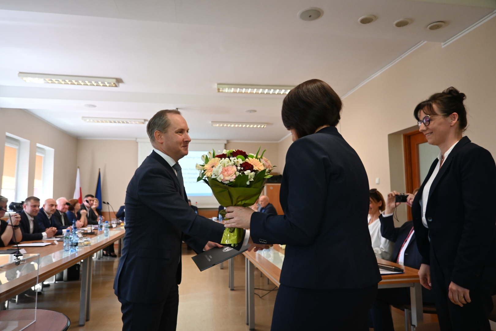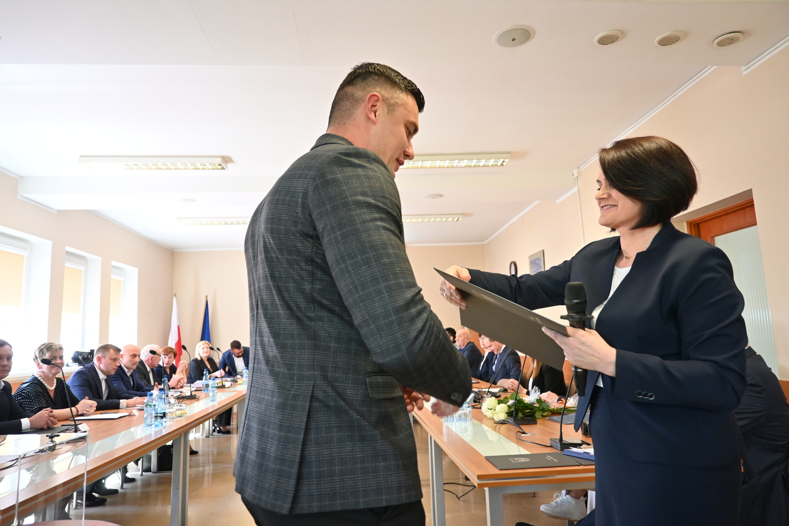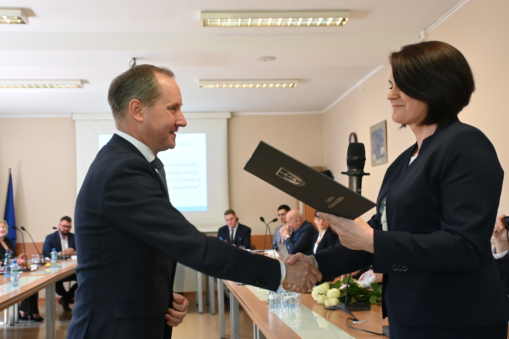 Po wystąpienie nowo zaprzysiężonego Wójta głos zabrał również Burmistrz Gminy Lahntal Carsten Laukel, który w swoim wystąpieniu pogratulował nowo wybranemu Wójtowi i podkreślił, jak ważne jest wspólne działanie na rzecz gminy. ,,Chciałbym podkreślić, że realizacja zadań dla gminy nie leży wyłącznie w gestii Wójta. Jest to raczej wspólne przedsięwzięcie wszystkich, zarówno administracji, jak i Radnych. Tylko dzięki jedności i wspólnym wysiłkom możemy osiągnąć nasze cele i dlatego życzę wszystkim Państwu konstruktywnej współpracy.” - powiedział Burmistrz Carsten Laukel.