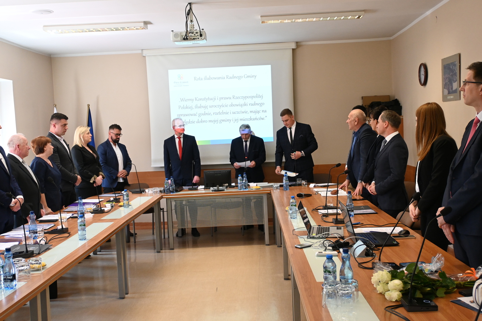 Podczas inauguracyjnego posiedzenia Przewodnicząca Gminnej Komisji Wyborczej Pani Kamila Filipkowska wręczyła Radnym zaświadczenia o wyborze, po czym nastąpiło złożenie ślubowania. IX kadencję Rady Gminy tworzyć będą: Mateusz Adamczyk, Błażej Choma, Krystyna Czapiewska, Jerzy Dolny, Leszek Dzienisz, Mieczysław Krauze, Arkadiusz Kreft, Radosław Lamczyk, Adam Nierzwicki, Janusz Nowakowski, Jarosława Polak, Justyna Pysznik, Adam Sulewski, Patrycja Weisbrot oraz Karol Wołoszyk.